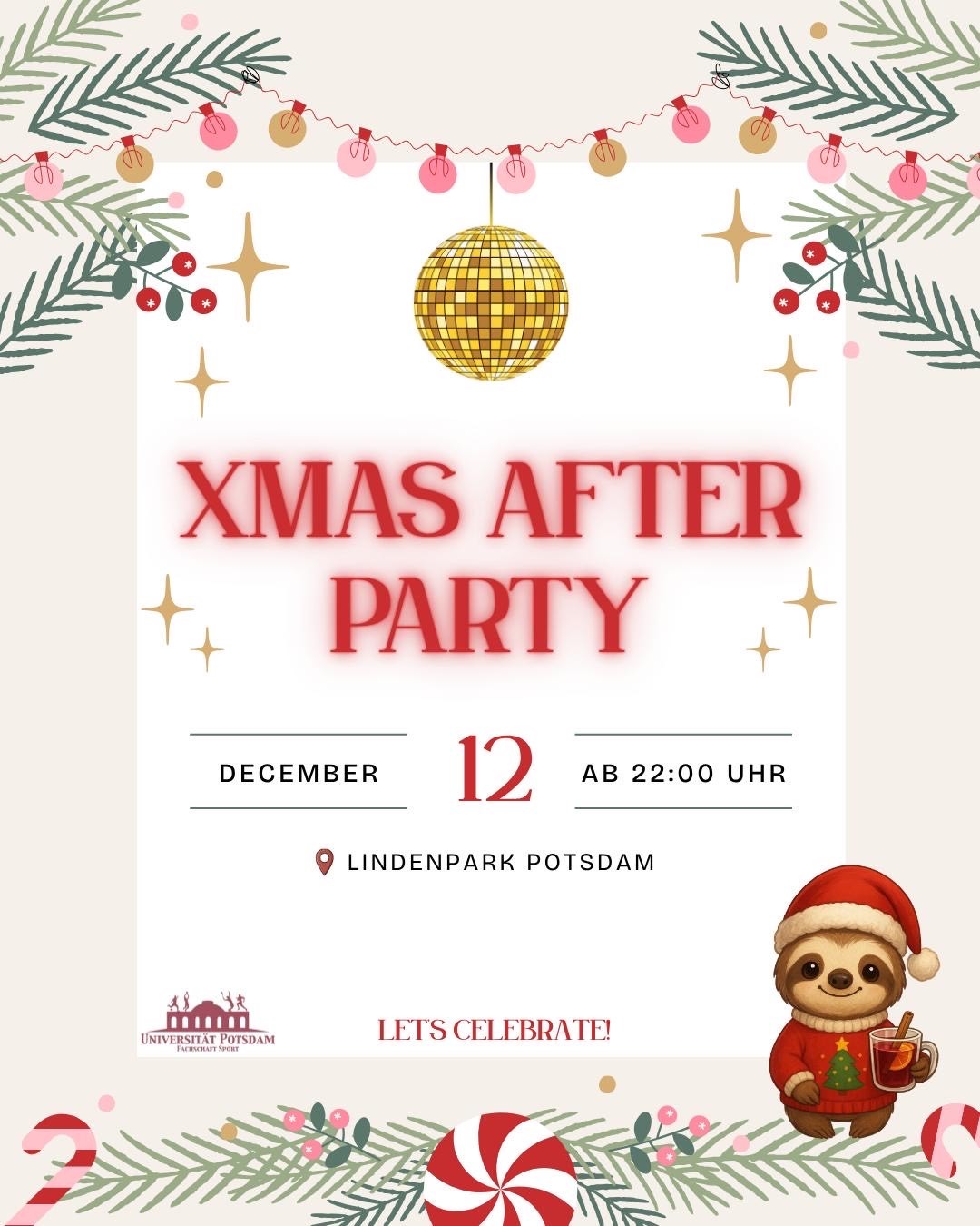 One Last Dance for 2025 🕺🏼✨ Am 12.12.25 wollen wir das Jahr gebührend verabschieden – direkt im Anschluss an die Weihnachtsvorlesung vom FSR Sport! 😎🎄 Bei der XMAS AFTER PARTY ab 22 Uhr heißt es noch einmal: Musik laut, Stimmung hoch und die Tanzfläche glüht heißer als der Glühwein! 🔥 Kommt vorbei und feiert mit uns einen unvergesslichen Abend voller guter Laune, Beats und Weihnachtsvibes! 🎅🏼💃